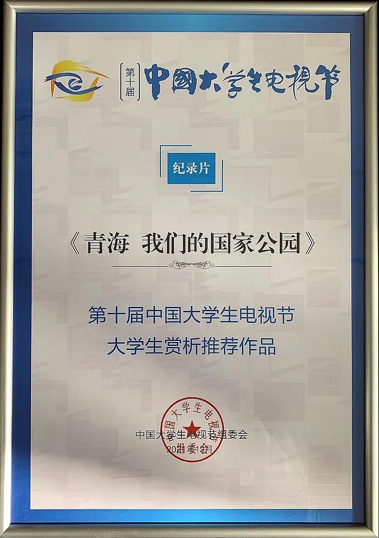 2022年1月6日至8日,第十届中国大学生电视节于四川省成都都江堰市举办。纪录片《青海·我们的国家公园》荣获第十届中国大学生电视节纪录片类大学生赏析推荐作品奖。