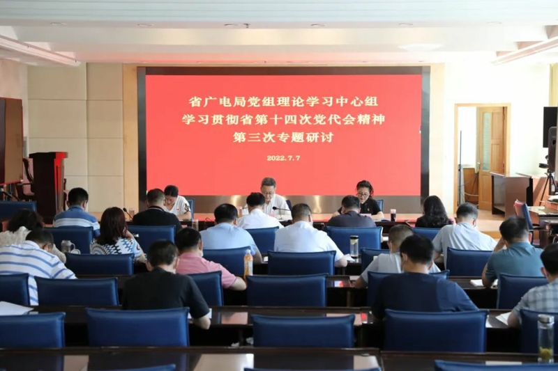 7月7日下午,省广电局召开第三次学习贯彻省第十四次党代会精神专题研讨会,局党组各成员及局系统副处级以上领导干部共计30余人参加会议。局党组书记、局长张新文主持会议,并就学习宣传贯彻省第十四次党代会精神提出要求。