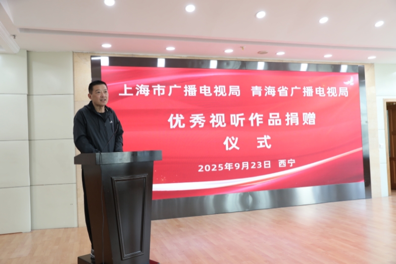 捐赠仪式上,青海省广播电视局副局长卓玛才让致辞,指出,此次上海局对我省优秀视听作品的捐赠行动既为沪青两地广电事业进一步深化合作、共促发展搭建了桥梁,也是落实双方主要负责同志在上海电视节期间达成共识的实际举措,更为青海广电带来了发展动力、创新思路与宝贵经验,将为青海广电拓宽视野、推动高质量发展注入强劲活力。青海拥有三江源、青海湖、祁连山等世界级生态IP以及丰富多元的影视拍摄资源,既是推动精品创作出新出彩的资源“富矿”,也是青海广电承接援助促发展的资源禀赋。青海将积极承接上海援青优势资源,为上海影视创作提供素材、场景和服务保障,期待双方在资源共享、优势互补中实现互利共赢,共同探索影视创作高质量发展的新路径、新机制、新成果。