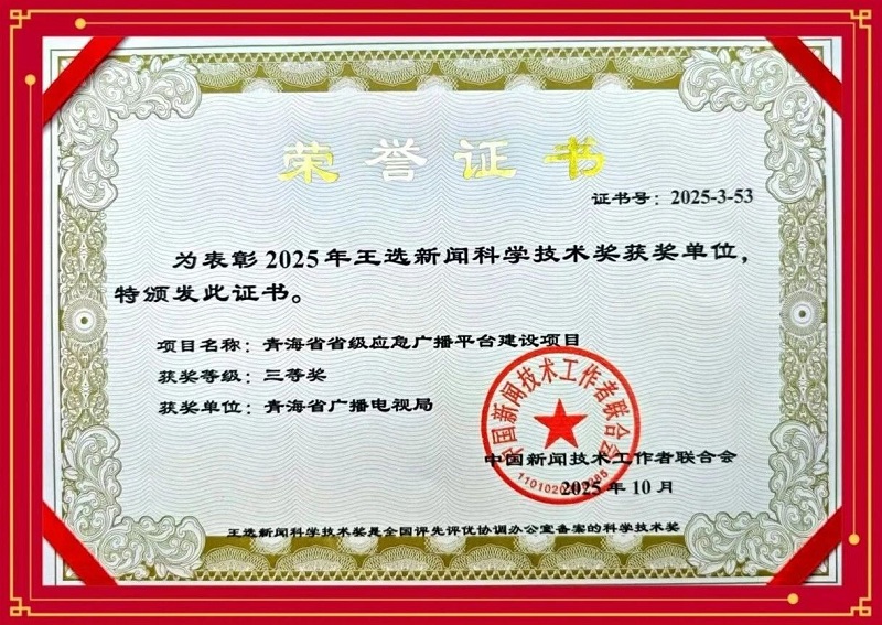 2025(第十届)中国新闻技联学术年会暨“王选新闻科学技术奖”颁奖大会10月31日在四川成都举办。青海省广播电视局主导实施的“青海省省级应急广播平台建设项目”荣获三等奖,这是我省继2023年获此奖项一等奖之后,又一次在广电行业国家级科技创新发展中荣获行业科技类奖项。
