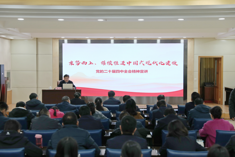 为全面深入学习贯彻党的二十届四中全会精神,根据省委宣传部统一部署,11月21日,省广电局举办学习贯彻党的二十届四中全会精神宣讲报告会,邀请省委宣讲团成员、青海广播电视台党组成员、副台长罗藏作宣讲报告。在家的局领导及局系统80余名党员干部职工参加报告会。