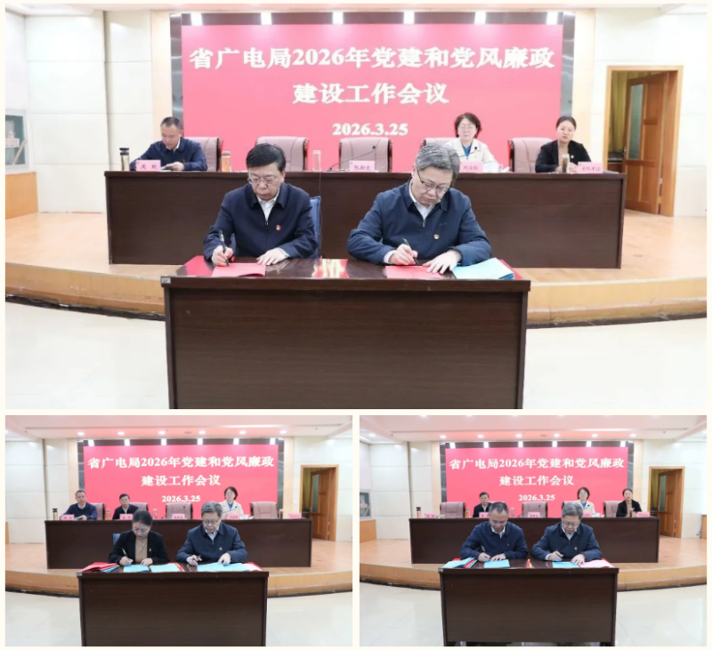 会议书面报告了2025年度机关党建工作、党风廉政建设工作情况,签订了省广电局2026年机关党建工作目标责任书、党风廉政建设工作目标责任书和意识形态(网络意识形态)工作目标责任书。6名基层党组织书记对抓基层党建工作进行现场述职,局党组书记对存在的问题分别点评。
